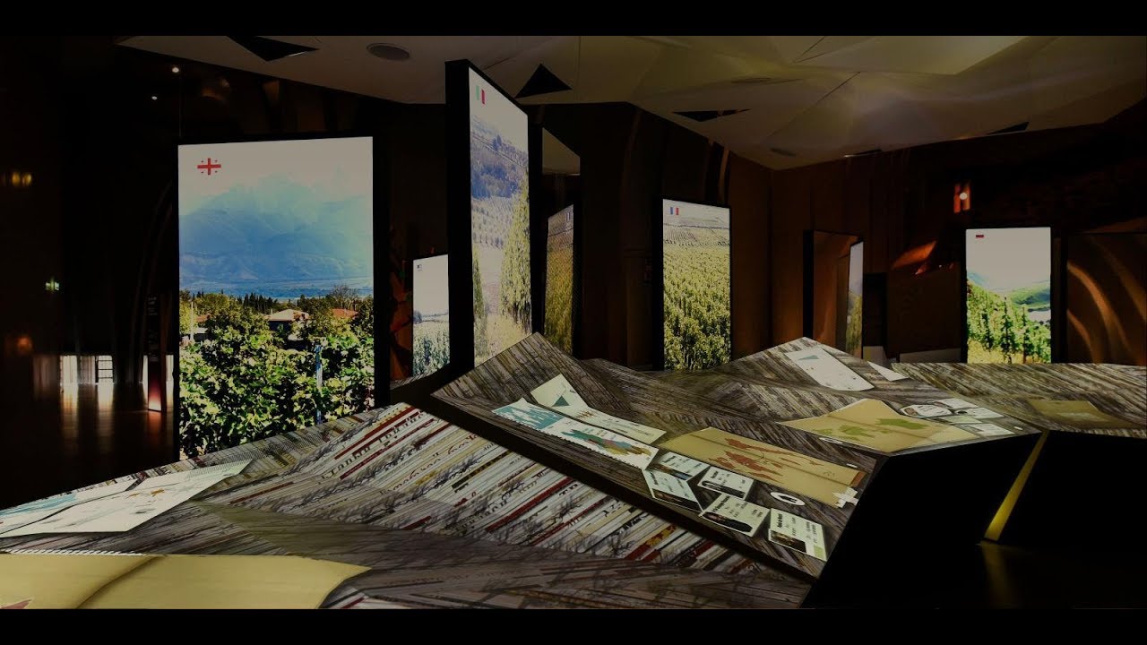 Un nuage semble assombrir le ciel, projetant son ombre mouvante sur la vaste table des terroirs qui figure un paysage de vigne aux reliefs accidentés. Une odeur de terre mouillée s’en échappe. Des silhouettes grandeur nature d’hommes et de femmes se dressent sur le pourtour. Minute après minute, imperceptiblement, le paysage se transforme et verdit, troublé parfois par une averse ou un orage, évoquant l’importance du climat et l’évolution de la vigne au fil des saisons.
